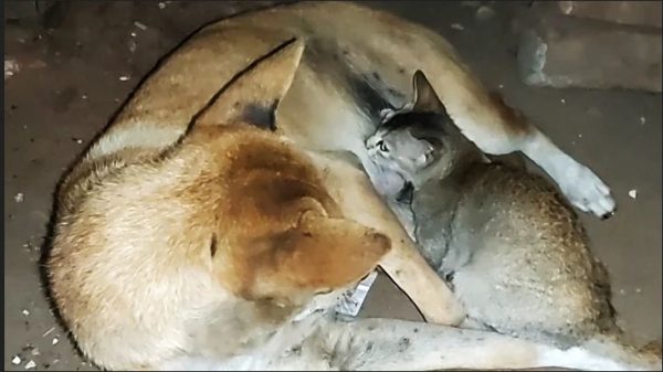 কুকুরের দুধ খেয়ে বেড়ে উঠছে বিড়াল ছানা