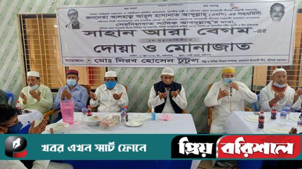 বীর মুক্তিযোদ্ধা সাহান আরা বেগমের প্রথম মৃত্যুবার্ষিকী উপলক্ষে বরিশাল মহানগর আওয়ামী লীগের শিল্প ও বানিজ্য বিষয়ক সম্পাদক নিরব হোসেন টুটুলের উদ্যোগে দোয়া মোনাজাতের আয়োজন করা হয়েছে। আজ মঙ্গলবার নগরীর