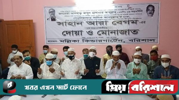 বীর মুক্তিযোদ্ধা সাহান আরা বেগমের প্রথম মৃত্যুবার্ষিকী উপলক্ষে বরিশাল মহানগর আওয়ামী লীগের শিল্প ও বানিজ্য বিষয়ক সম্পাদক নিরব হোসেন টুটুলের উদ্যোগে দোয়া মোনাজাতের আয়োজন করা হয়েছে। আজ মঙ্গলবার নগরীর